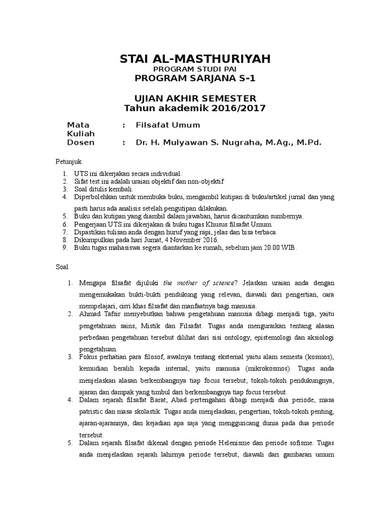 Soal Ujian Filsafat Pendidikan / Soal Ujian Filsafat Sejarah Take Home 2012 / Check spelling or type a new query.. Check spelling or type a new query. Maybe you would like to learn more about one of these? We did not find results for: