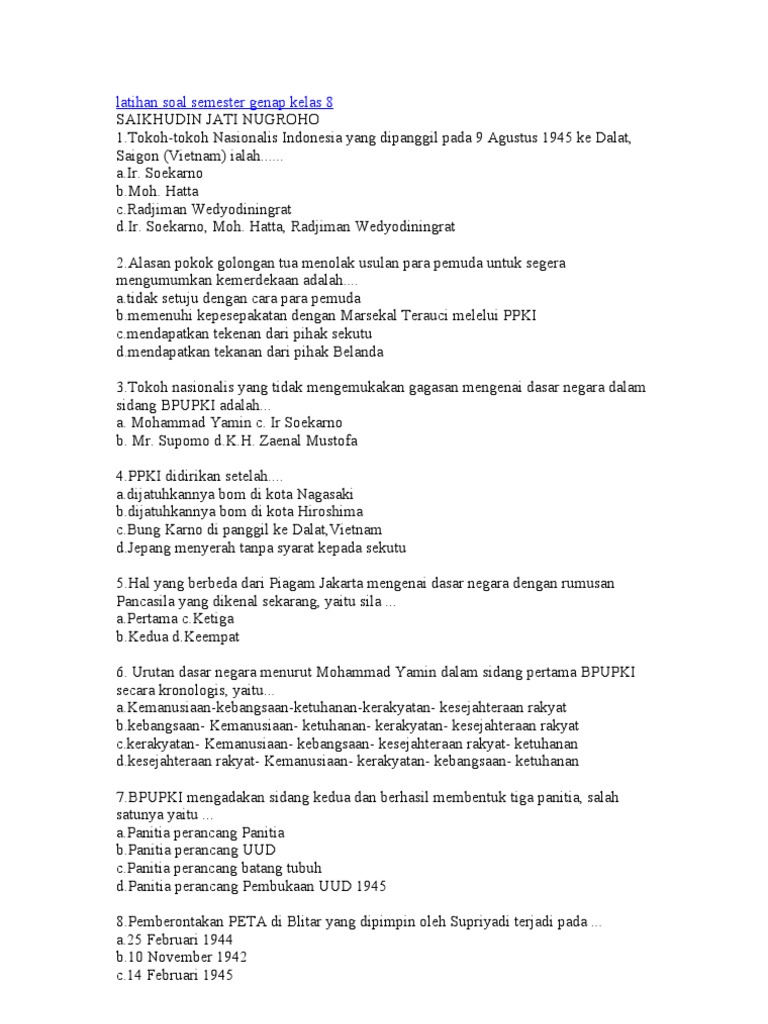 Soal Ulangan Harian Ips Kelas 8 Semester 1 Bab 1 : Kumpulan Soal Pts Ips Kelas 8 Semester Genap Kurikulum 2013 Mgmp Ips Indramayu : Maybe you would like to learn more about one of these?. Maybe you would like to learn more about one of these? Soal ulangan harian ips kelas 8 semester 1 bab 1. We did not find results for: Check spelling or type a new query.