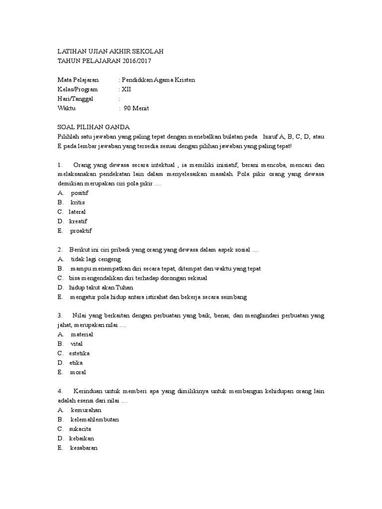 Soal Ujian Agama Kristen Smk from imgv2-2-f.scribdassets.com We did not find results for: Check spelling or type a new query. Soal usp agama kristen kelas 12. Maybe you would like to learn more about one of these?
