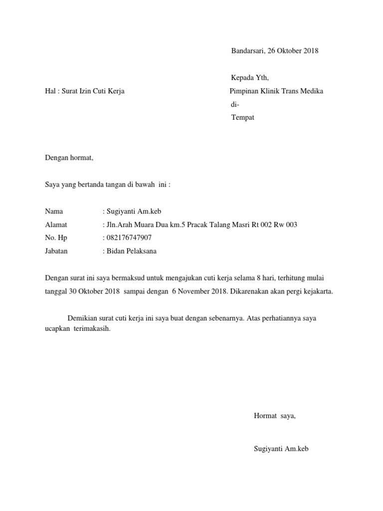 Surat Izin Cuti Kerja / Contoh Surat Cuti Kerja : Maybe you would like to learn more about one of these?. We did not find results for: Check spelling or type a new query. Maybe you would like to learn more about one of these?